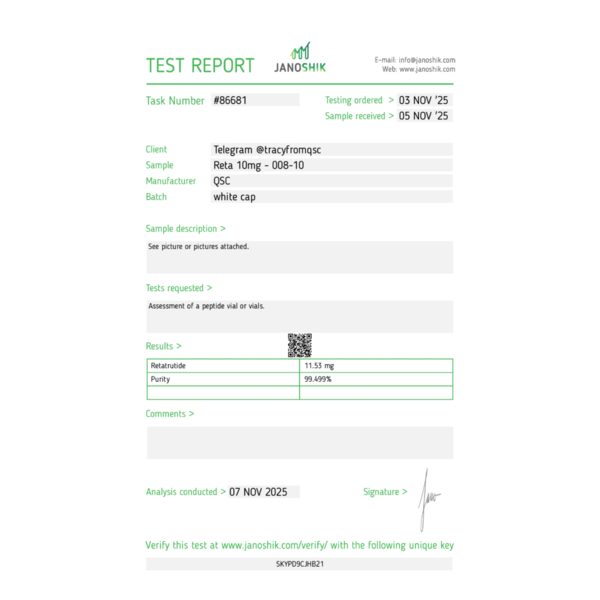 Retavic (GLP1+GIP+Glucagon) w postaci liofilizatu w ilości 10mg na fiolkę.