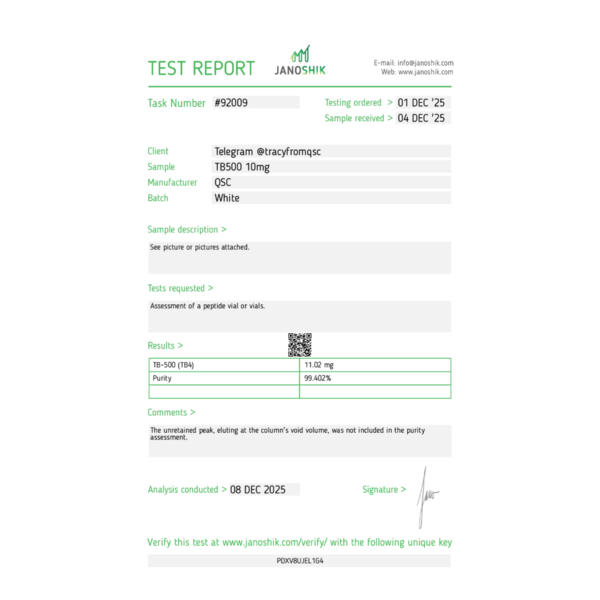 Peptyd TB-500 w postaci liofilizatu w ilości 10mg na fiolkę.